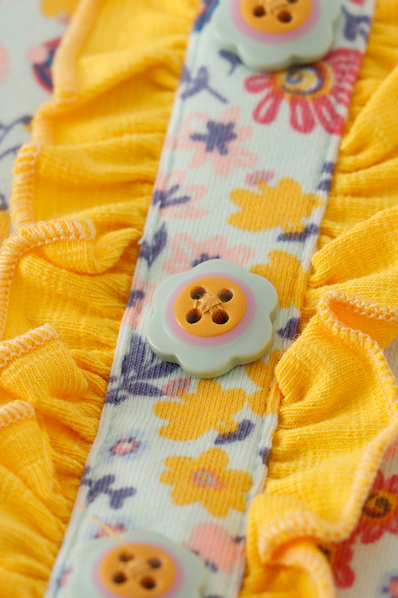 Platinum Blue floral print ruffle girl dress
