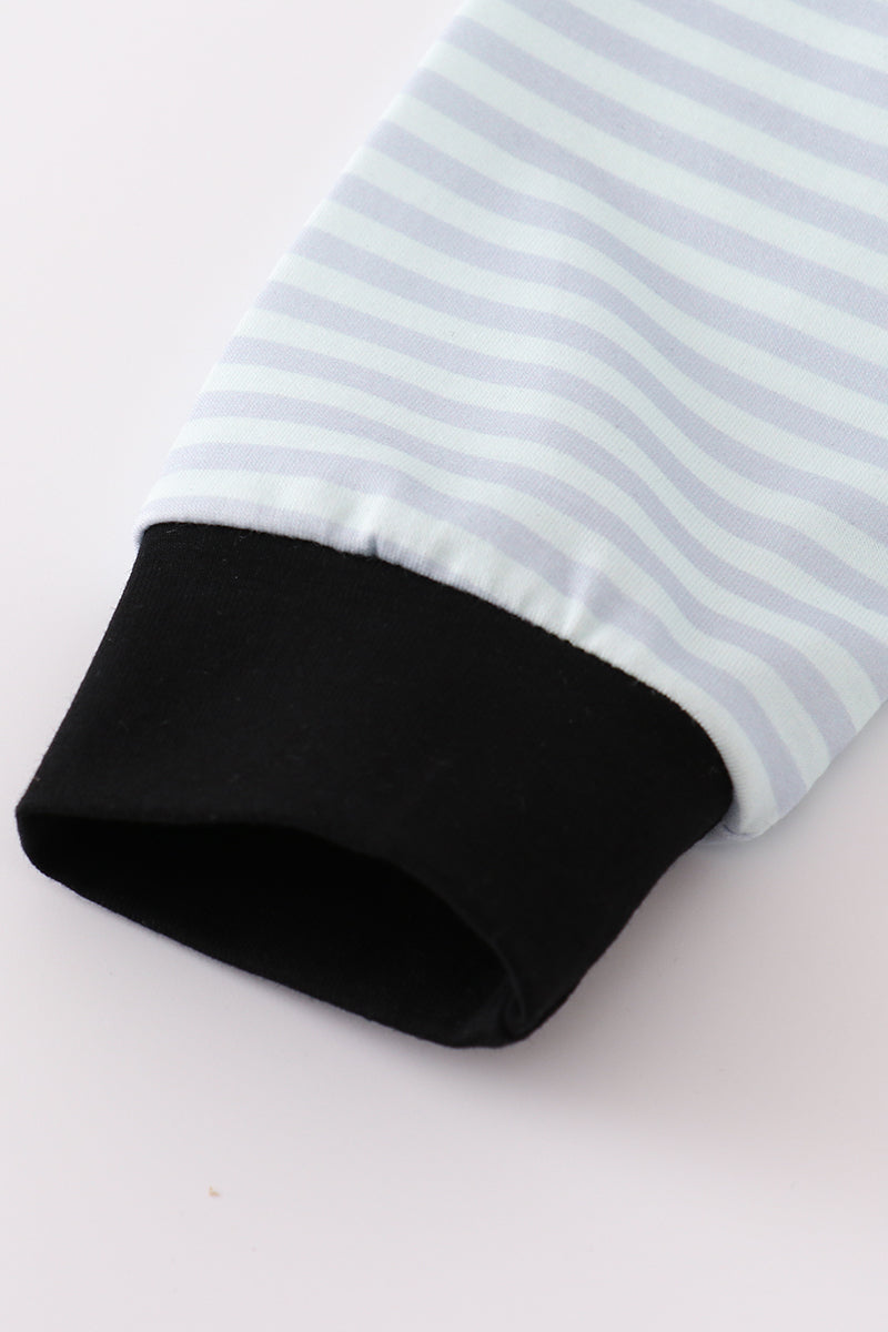 Blue Halloween spider embroidery stripe pants set