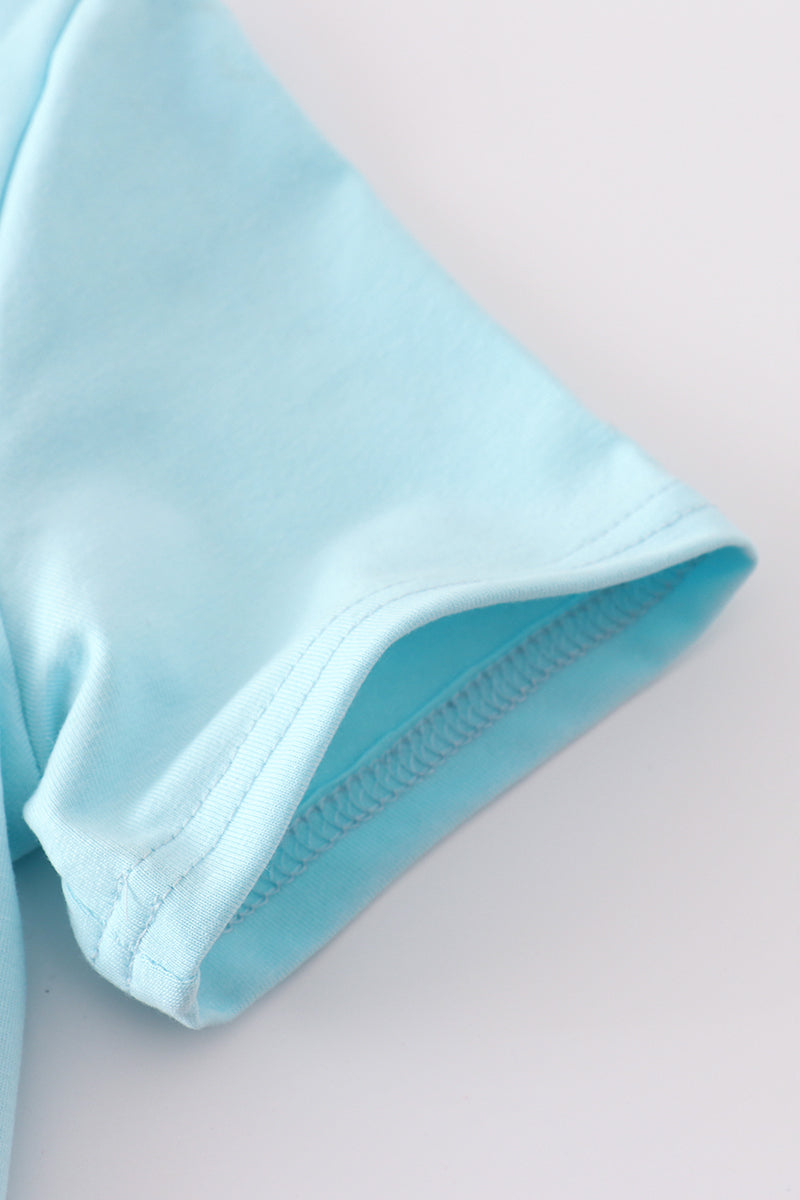 Blue puppy gingham applique shorts set