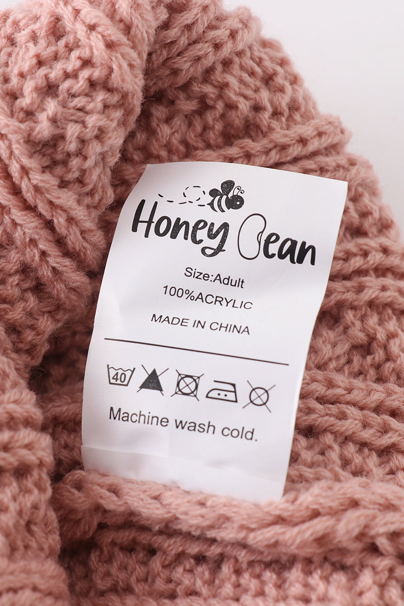 Dust rose cable knit pom pom beanie hat baby toddler adult
