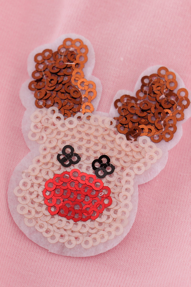 Pink santa claus reindeer sequin tiered ruffle dress