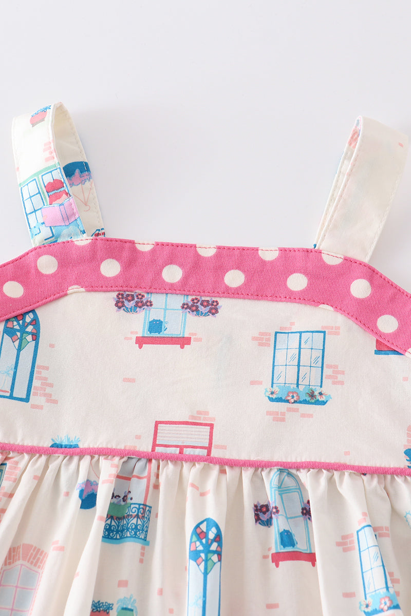 Platinum balcony print strap girl set
