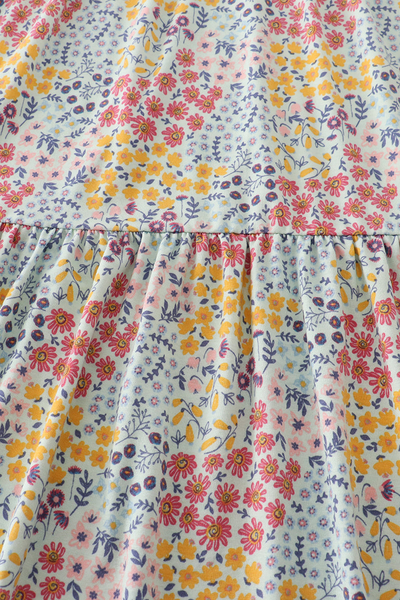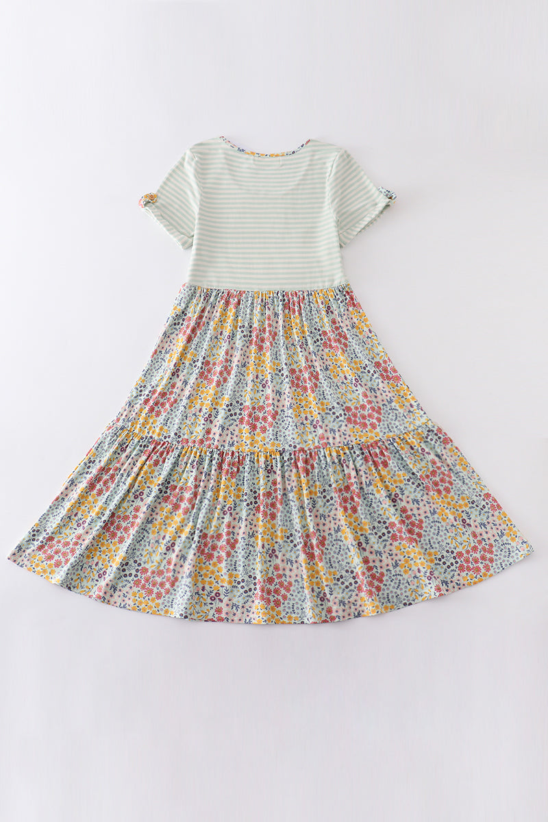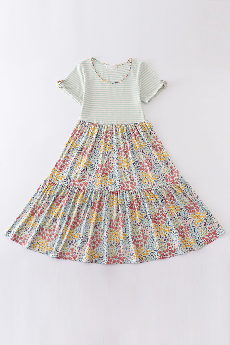 Platinum flroal print stripe tiered dress for adult