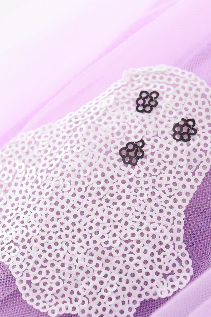 Get ready to spook and sparkle with this purple halloween trick or treat ghost tutu sequin dress. Perfect for any Halloween party or trick or treating, this dress will have you looking hauntingly beautiful. Pair it with some spooky accessories and dance the night away (if you dare)!